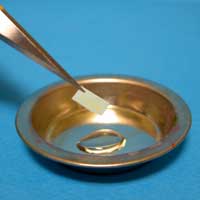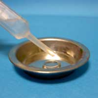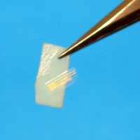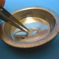 ガンダムデカールを台紙につけたままピンセットでよく浸します、軽く、デカールを傷つけないように下の方向に押してやります。水分をしみ込ませるようにします。台紙が水を含んだ所で終了します。