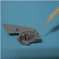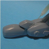 パーツを合わせてから流し込みタイプの 接着剤を流し込んでみました。 普通の接着剤より作業は楽です。 溶けたプラスチックはあんまり出てきません